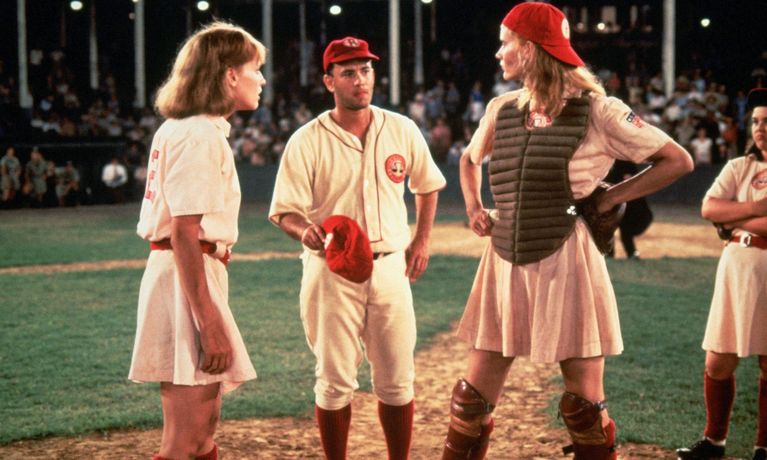 As America's stock of athletic young men is depleted during World War II, a professional all-female baseball league springs up in the Midwest, funded by publicity-hungry candy maker Walter Harvey. Competitive sisters Dottie Hinson and Kit Keller spar with each other, scout Ernie Capadino and grumpy has-been coach Jimmy Dugan on their way to fame.