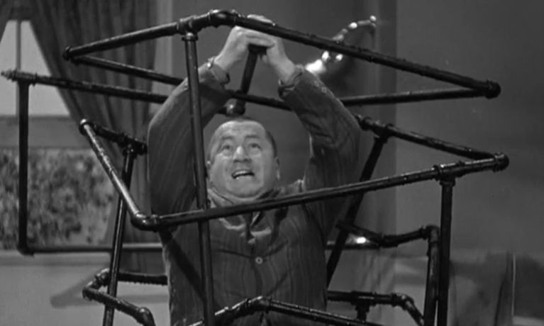 To escape the police, the stooges pose as plumbers and are hired to fix a leak in a fancy mansion. They wind up crossing the electrical system with the plumbing and generally ruin the place. One memorable scene has the lady of the house tuning into a television broadcast from Niagara Falls as a torrent of water pours from the set. To escape the wrath of the homeowners the stooges escape through a magicians trap door.