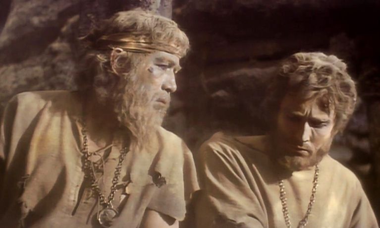 Problems of dubbing and pacing and a lack of scene-to-scene variety weigh the movie down, but Christopher Fry's pointed and intelligent free adaptation of Par Lagerkvist's 1950 novel resists grandiloquence.