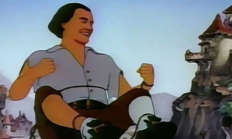 Gulliver washes ashore on Lilliput and attempts to prevent war between that tiny kingdom and its equally-miniscule rival, Blefiscu, as well as smooth the way for the romance between the Princess and Prince of the opposing lands. In this he is alternately aided and hampered by the Lilliputian town crier and general fussbudget, Gabby. A life-threatening situation develops when the bumbling trio of Blefiscu spies, Sneak, Snoop, and Snitch, manage to steal Gulliver's pistol.