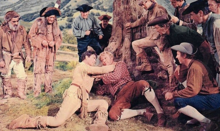 Packaged and sold as an outdoor actioner, Many Rivers to Cross is as much a comedy as anything else. Robert Taylor stars as 18th century trapper Bushrod Gentry, who is himself entrapped into marriage by the spunky Mary Stuart Cherne (Eleanor Parker). Escaping his marital responsibilities (which were impressed upon him on threat of death), Gentry heads into the North Country, with Mary in hot pursuit. Hero and heroine spend the rest of the picture taking turns rescuing each other from hostile Indians. Some of the humor is predicated upon the wholesale slaughter of the "redskins", and as such is a bit hard to take when seen today. Supporting Taylor and Parker are Victor McLaglen as the heroine's burly father, and TV-stars-to be James Arness (Gunsmoke) and Russell Johnson and Alan Hale Jr. (Gilligan's Island).