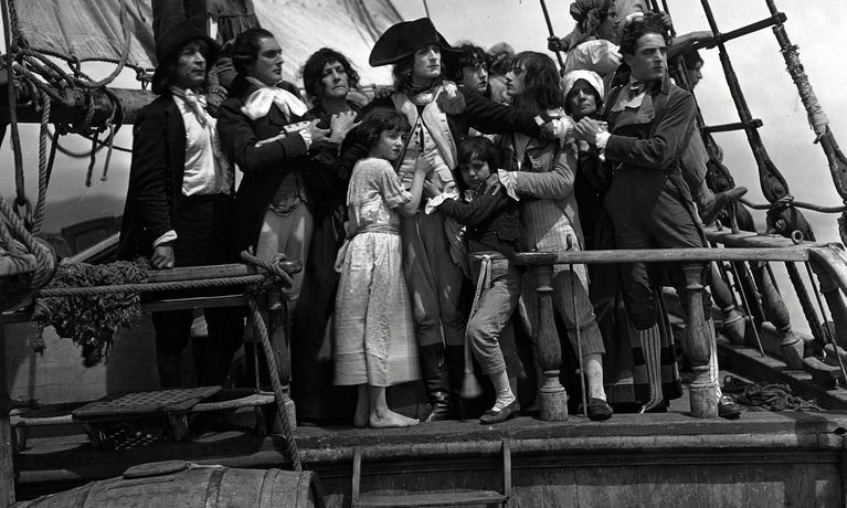 A massive 5 1/2 hour biopic of Napoleon, tracing his career from his schooldays (where a snowball fight is staged like a military campaign), his flight from Corsica, through the French Revolution (where a real storm is intercut with a political storm) and the Terror, culminating in his triumphant invasion of Italy in 1797 (the film stops there because it was intended to be part one of six, but director Abel Gance never raised the money to make the other five). The film's legendary reputation is due to the astonishing range of techniques that Gance uses to tell his story, culminating in the final twenty-minute triptych sequence, which alternates widescreen panoramas with complex multiple- image montages projected simultaneously on three screens.