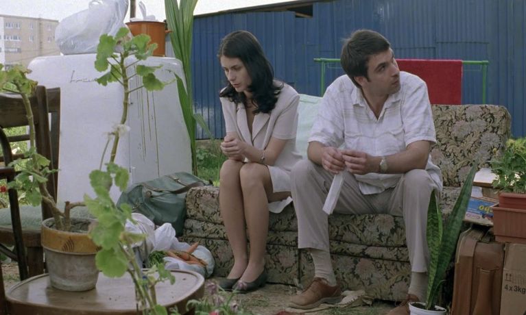"Occident" is a bitter comedy about the people who want to emigrate from Romania, and about those who stay behind. The movie has a rich, interesting structure: there are three different stories - a weeklong in the film - that cross, interconnect and happen in the same period. The characters influence each others lives, sometimes even without knowing. Main characters from one story become secondary characters in another story. At the same time, scenes from the first part of the movie bring unexpected facts when seen the second or the third time. The stories do not have just one ending: the first story ends in each of the third parts in a different point, suggesting radically different solutions for the characters. The way in which the director fits time and links events together often produces thematically unexpected results.