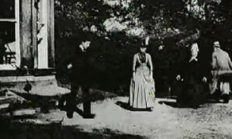 The earliest surviving celluloid film, and believed second moving picture ever created, was shot by Louis Aimé Augustin Le Prince using the LPCCP Type-1 MkII single-lens camera. It was taken in the garden of Oakwood Grange, the Whitley family house in Roundhay, Leeds, West Riding of Yorkshire (UK), possibly on 14 October 1888. It shows Adolphe Le Prince (Le Prince's son), Mrs. Sarah Whitley (Le Prince's mother-in-law), Joseph Whitley and Miss Harriet Hartley walking around in circles, laughing to themselves and keeping within the area framed by the camera. The Roundhay Garden Scene was recorded at 12 frames per second and runs for 2.11 seconds.