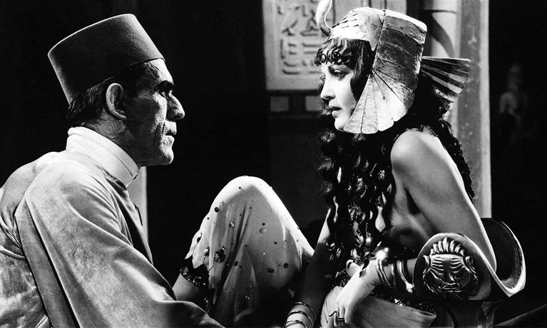 The transformation of Karloff's Im-Ho-Tep from a clay-like figure in a coffin to a living thing is the highlight.