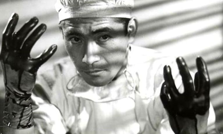 Toshirō Mifune plays a young idealistic doctor who works at his father's (Takashi Shimura) clinic in a small and seedy district. During the war, he contracts syphilis from the blood of a patient when he cuts himself during an operation. Treating himself in secret and tormented by his conscience, he rejects his heartbroken fiancée without explanation.