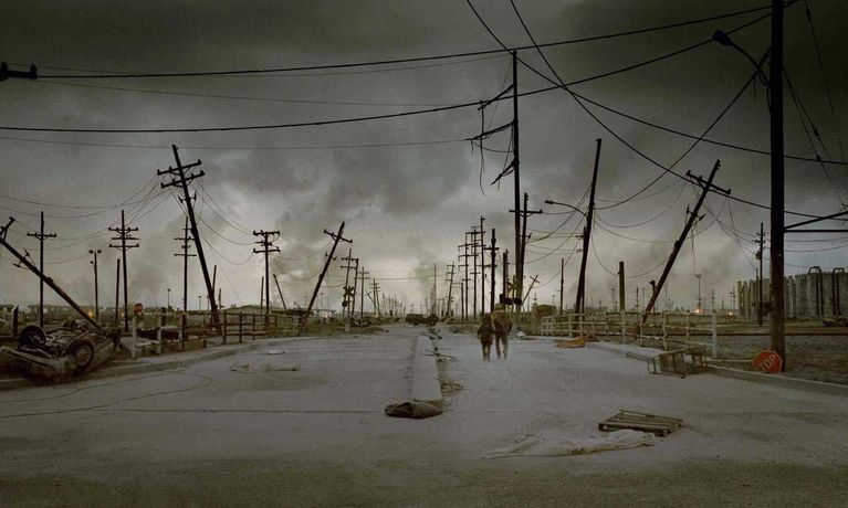 A father and his son walk alone through burned America. Nothing moves in the ravaged landscape save the ash on the wind and water. It is cold enough to crack stones, and, when the snow falls it is gray. The sky is dark. Their destination is the warmer south, although they don't know what, if anything, awaits them there.