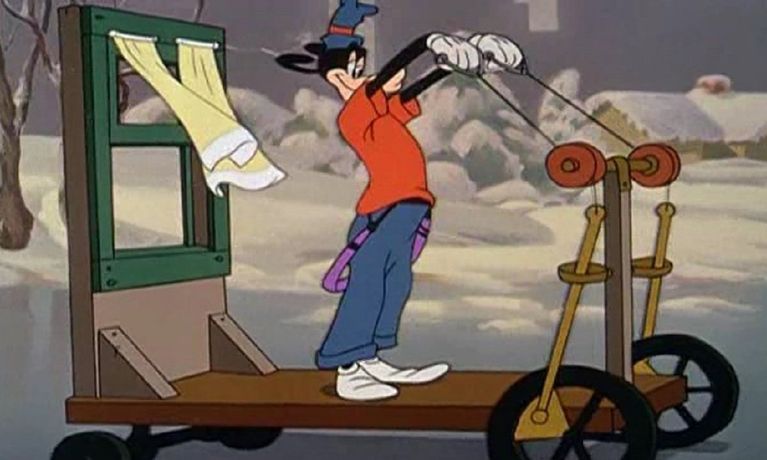 Goofy demonstrates a number of crazy vehicles.